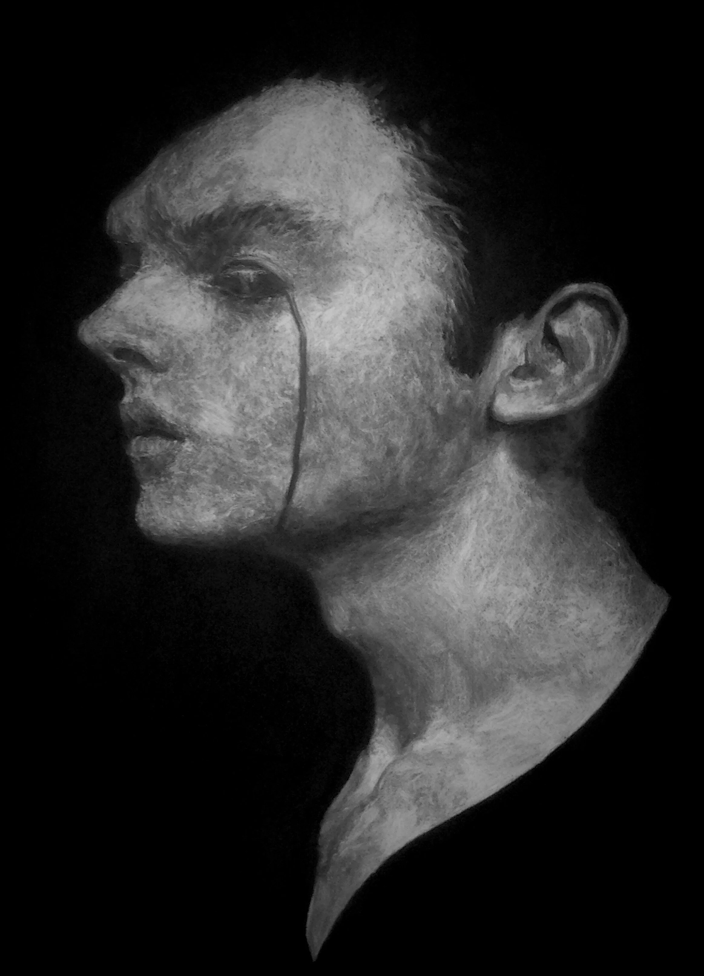 This diptych explores the effects of intrusive thoughts on a person’s outlook. The masculine figure has past trauma from drowning depicted in their gaze while the feminine figure displays a possible event hanging in their future. Both retain a relaxed face for this is a perfectly normal outlook, is it not?